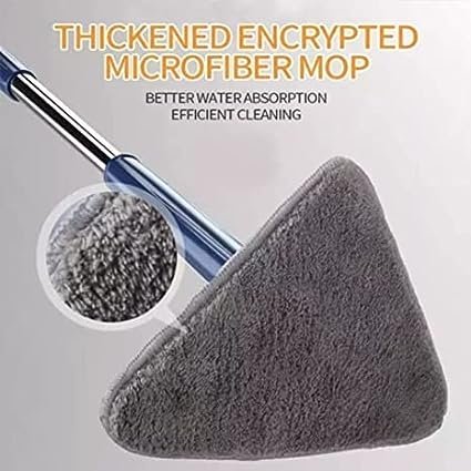 360° Rotatable Adjustable Cleaning Mop Triangle Mop with Stainless Steel Long Handle Push-Pull Squeezing Cleaning Mop Dry & Wet Mop for Floor Windows Ceiling Wall Narrow Space