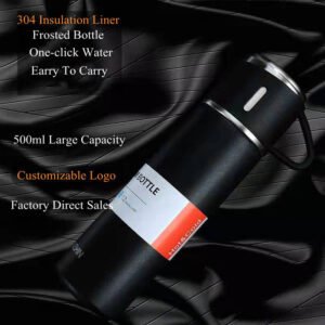 Double Wall Stainless Steel Thermo 500ml Vacuum Insulated Bottle Water Flask Gift Set with Two Cups Hot & Cold | Assorted Color | Diwali Gifts for Employees | Corporate Gift Items